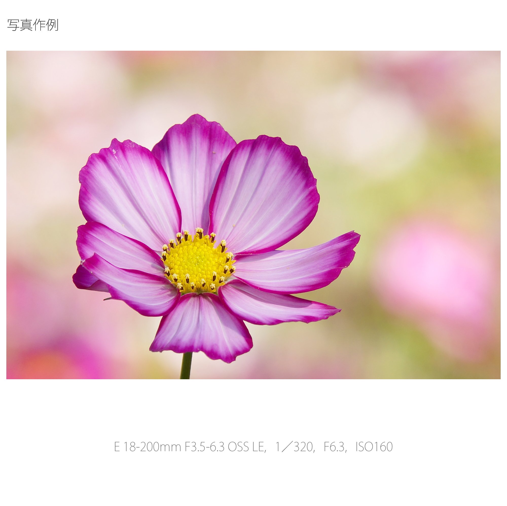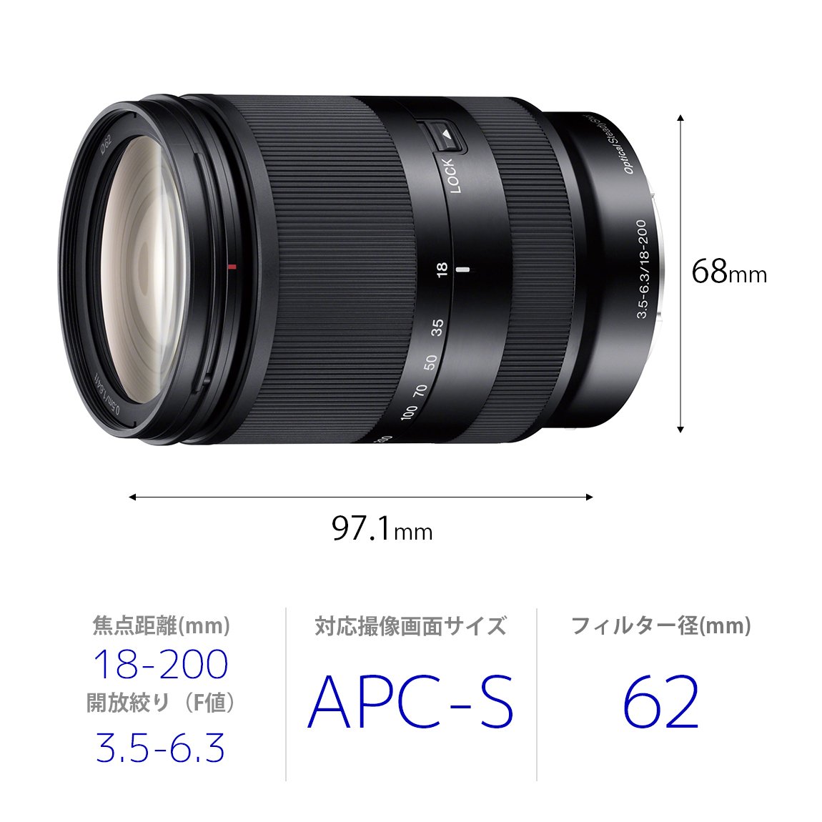 A high magnification zoom lens designed exclusively for E mount covering a wide range of photographing range from wide angle 27 mm to telephoto 300 mm equivalent (*), about 11 times optical.