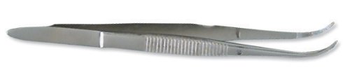 Frey Scientific Chrome Plated Steel Student Grade Medium Point Forceps with Curved Tips, 4-1/2" Length