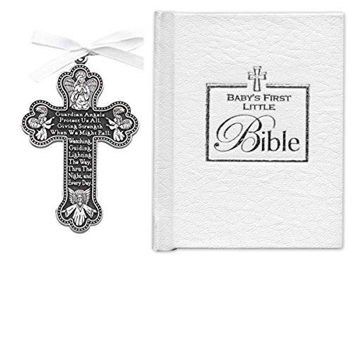 BABY'S Gift Set - First Little Bible & CRIB CROSS - BOY or Girl - Gender Neutral - Bless This Child - BAPTISM Christening BOXED WHITE Ribbon