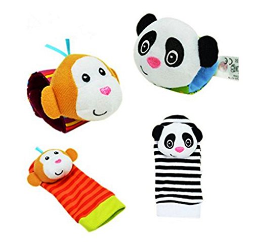 Baby Learning Fun - Animal Wrist Rattle & Foot Finder Gift Set is easy to wear, comfortable rattles to stimulate and inspire your baby. The bright and contrasting colors as well as soft rattle encourage your baby development from early infant stages and for many months as your baby grows. These enchanting soft animal rattle toys will continue to be a child's favorite for a long time.