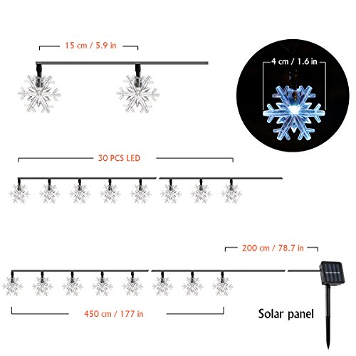 【WATERPROOF(IP65) 】Both the string of lights and the solar panel are waterproof,can withstand most weather conditions, including rain and snow, perfect for indoor and outdoor decoration.