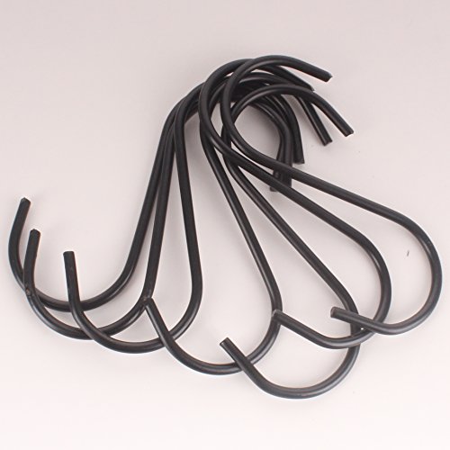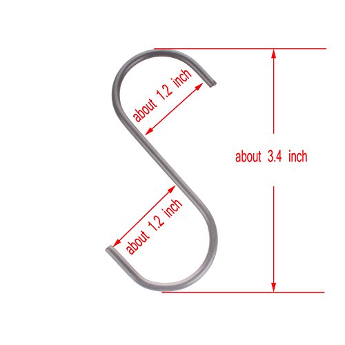 Binding : Kitchen Product Description Zicome Metal S Shape Type Hooks Hangers, Black Sleek and unnoticeable, look nice It is very powerful to hang and hold a lot of weight Nice and long to give you plenty of room to take your pots on and off Rustproof sturdy steel hooks Black color matches the wire rack color The S Shape hook is suitable for hanging on existing objects without the need for screws and nails Used to hang pot, pan, bowl, cup, kitchen utensils, clothes, shop fitting, bathroom, camping hanging, etc. Specifications Length: about 3.4" Open end: about 1.2" wide Thickness: approx. 0.12"/3mm 0