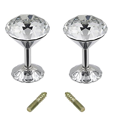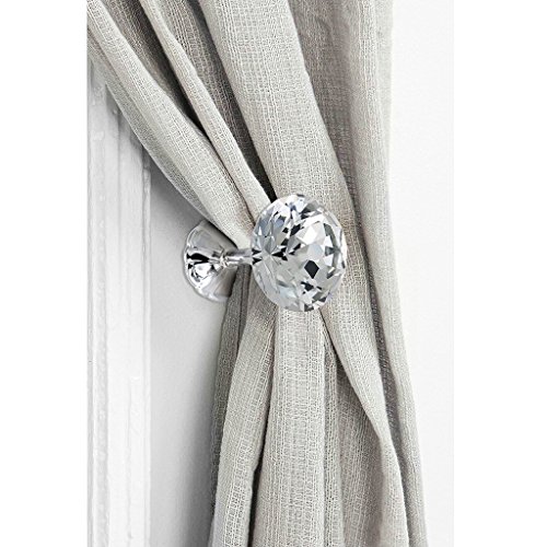 Hipiwe 2 Packs Glass Crystal Curtain Holder, 60mm Curtain Hook, Window Drapery Tie Backs Clips, Wall Cap Coat Hook Hanger Tassel Holder (Silver)
