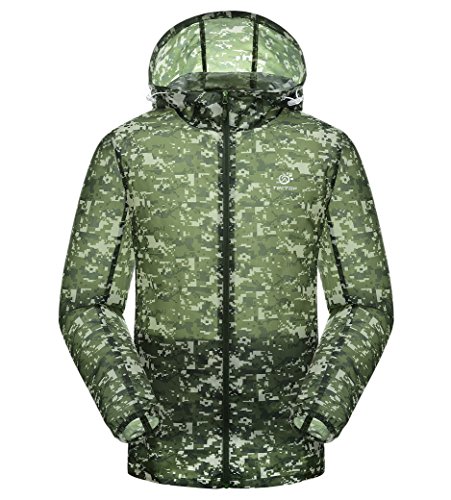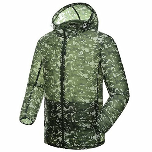 Panegy Men Dri-Fit Sun UV Protection Rain Jacket Camouflage Hoodie Skin Coat Size L - Green