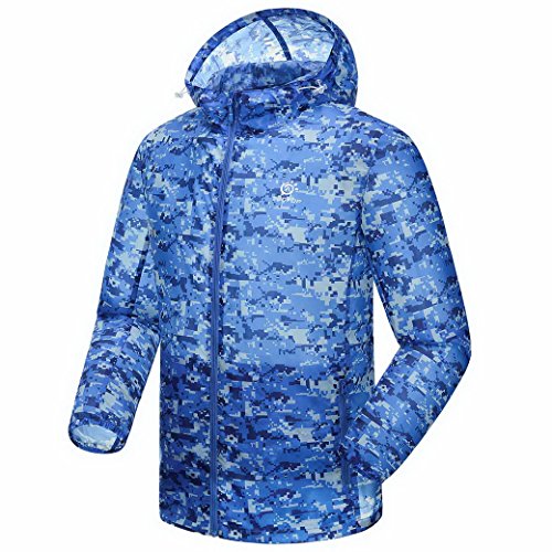 Panegy Men Dri-Fit Sun UV Protection Rain Jacket Camouflage Hoodie Skin Coat Size L - Blue