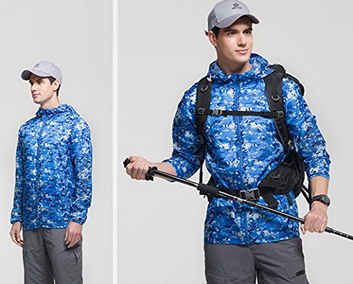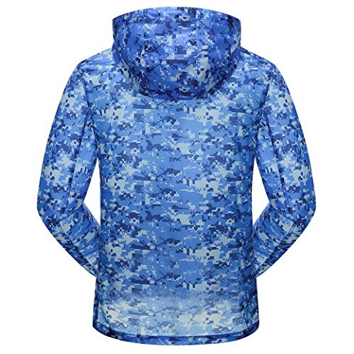 Panegy Men Dri-Fit Sun UV Protection Rain Jacket Camouflage Hoodie Skin Coat Size XL - Blue