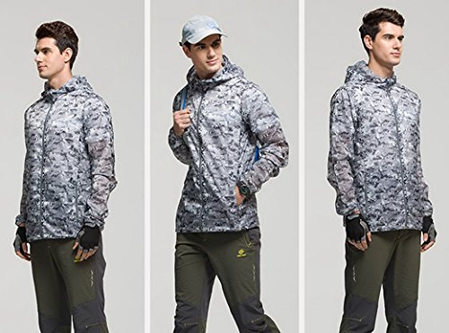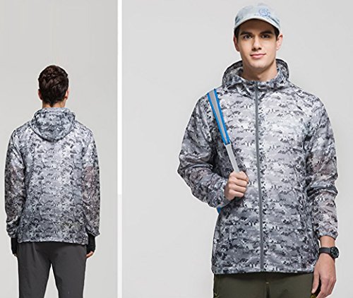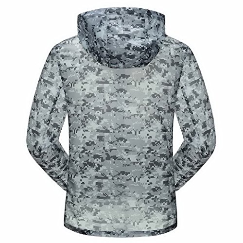 Panegy Men Dri-Fit Sun UV Protection Rain Jacket Camouflage Hoodie Skin Coat Size XL - Grey