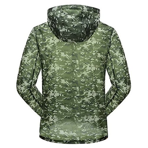 Panegy Men Dri-Fit Sun UV Protection Rain Jacket Camouflage Hoodie Skin Coat Size XL - Green
