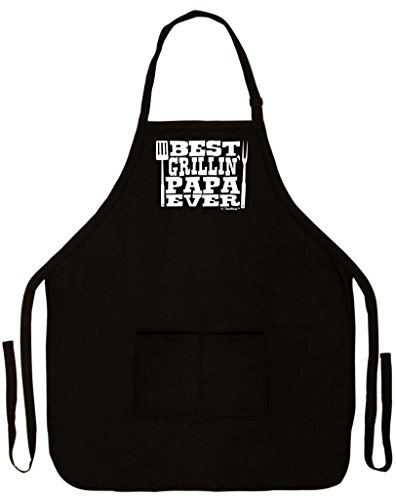 Father's Day Gift Best Grillin' Papa Ever Funny Apron for Kitchen BBQ Barbecue Cooking Grilling Bacon Two Pocket Apron for Grandpa or Dad Black