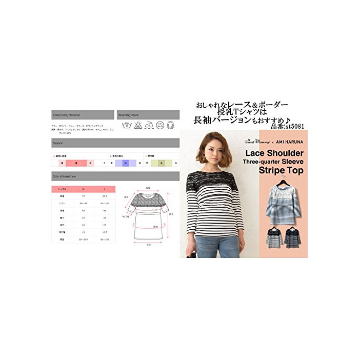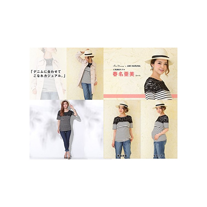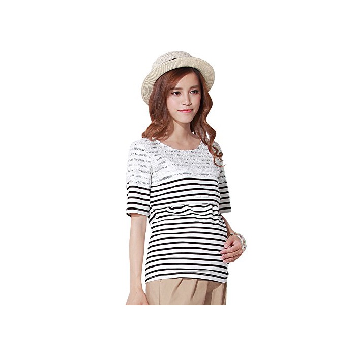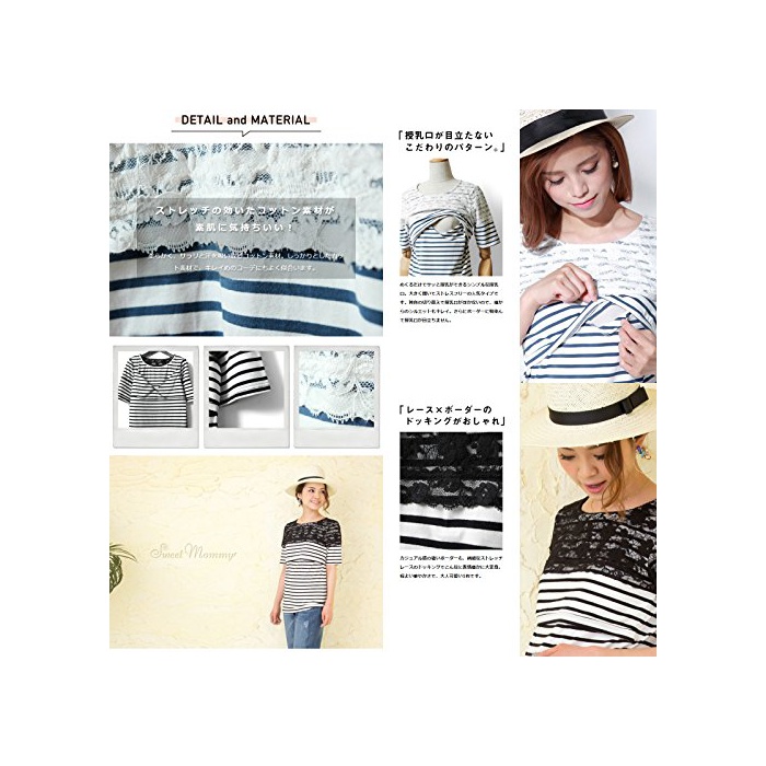 스위트마미 (Sweet Mommy) 레이스×보더 하프 슬리브 수유 톱스 마타니티 / 수유복