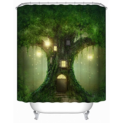 [Uphome Design] -This elegant bathroom shower curtains made of 100% Polyester fabric adds extra rust-resistant metal grommets and 12 high-quality plastic hooks Without the ROD, features a classic Tree house pattern, which can blend with any existing home decor.