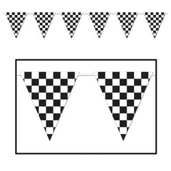 Studio : The Beistle Company Publisher : The Beistle Company Binding : Kitchen Product Description Beistle 57703 Checkered Giant Pennant Banner. Use this giant pennant banner for your race car party! This is great to hang from the ceiling, porch, patio or fence. It is made of plastic for indoor or outdoor use and has 6 pennants on the string. This banner measures 23 Inch tall by 12 feet wide. The party decor won't be complete without the checkered giant pennant banner!. 0