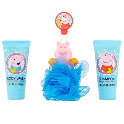 Peppa Pig Shampoo, Body Wash, Bath Scrubby and Squirter with Hook. Great Gift Set!