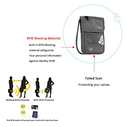 RFID Wallet Passport Holder Neck Stash Wallet Security Neck Pouch Travel Wallet RFID Wallet RFID Blocking Neck Wallet is made from high quality waterproof nylon, offer a better grip on the clutch.