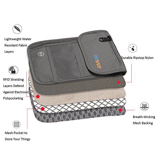 TOP MATERIAL - The light durable nylon material makes it easy to carry, and the well-designed strap and breathable mesh back will be comfortable on top of clothes or against your skin. Comfortable, breathable, lightweight, and water resistant passport holder . The back is made of ultra-soft breathable mesh, which increases your comfort by allowing the evaporation of any perspiration. The zipper is made of a strong zinc alloy making it even more durable.