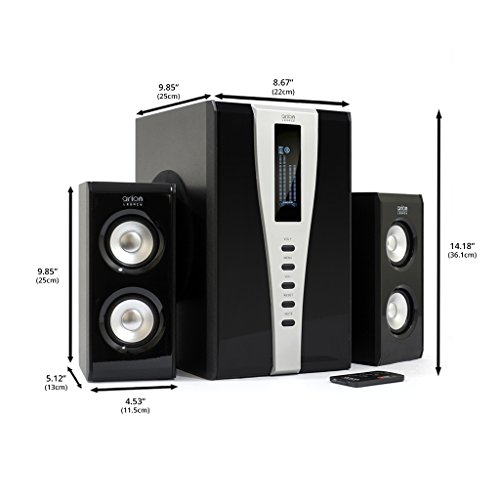 If your ultimate goal is to have a system that plays loud with accurate audio down low, you need this massively powerful 2 way loudspeaker system. Its reinforced woofers (4 in total) deliver forceful tight midrange. Giant 6.5 inch subwoofer delivers mind rattling bass you can feel. Designed with large PC monitors and HDTVs in mind, you can completely and precisely adjust sound preferences using the included wireless remote control. Please read the user manual carefully before using this product. Incorrectly wired system may cause damages to the speakers. For warranty services visit support.arionlegacy.com.Feature