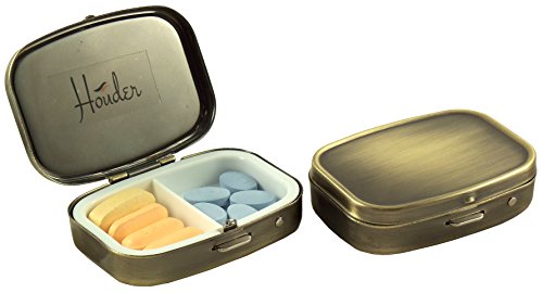 Classy Brass Pill Box by Houder - Decorative Pill Case with Gift Box - Carry Your Meds in Style (Rectangular)