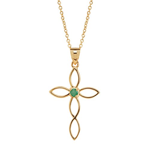 -. Feature : Open, Looping Cross Pendant / Round-Cut Natural Emerald / 18K Gold-Plated Sterling Silver / Measures 1 5/16 by 11/16 Inches / 18-Inch Cable Chain