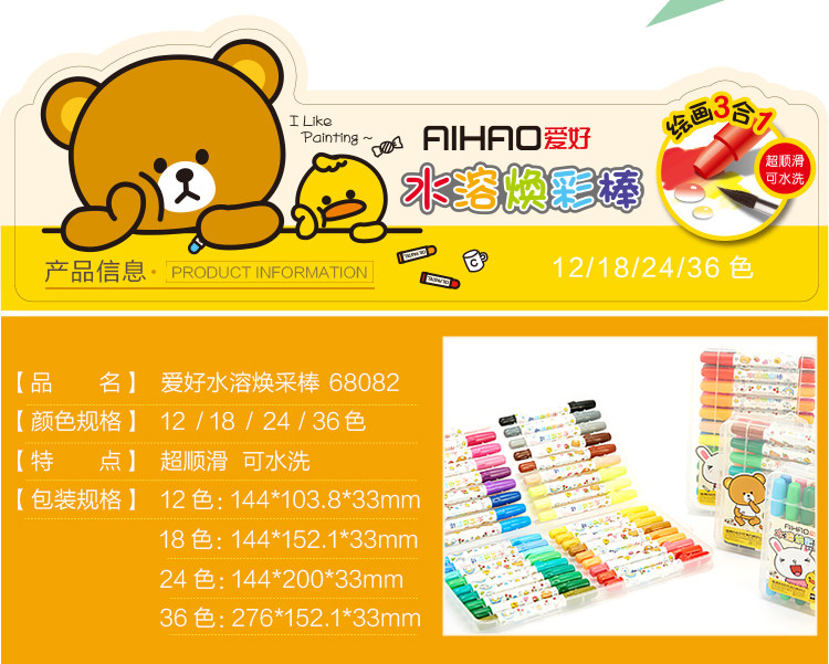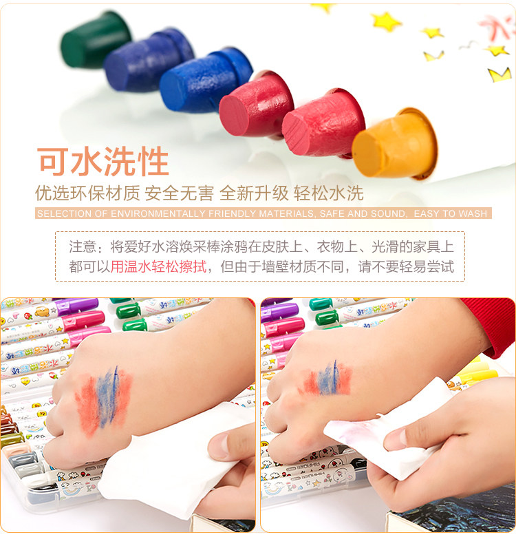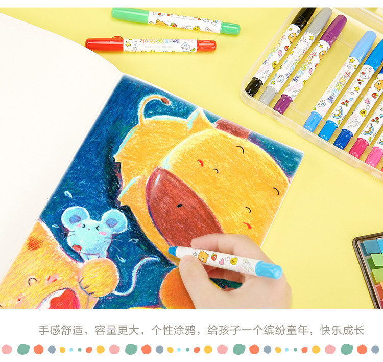 蜡笔油画棒 水溶性炫彩棒丝滑旋转儿童绘画三合一可水洗