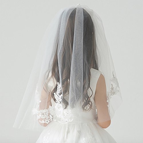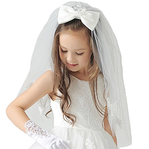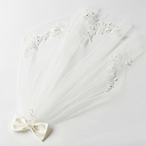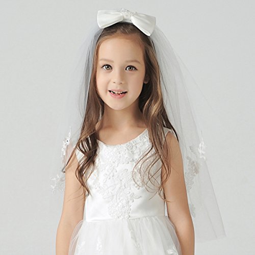 Elesa Miracle Flower Girl Bow Embroidered Wedding Veil, Ivory, In Gift Box