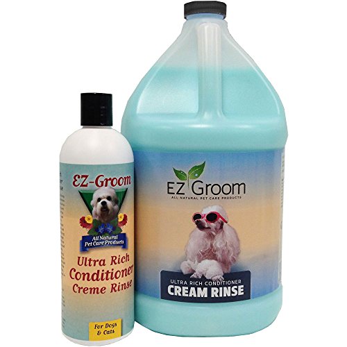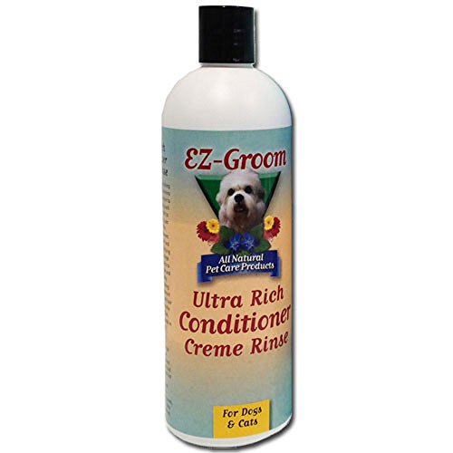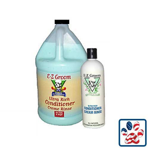 Studio : EZ Groom Publisher : EZ Groom Binding : Misc. Product Description EZ Groom Ultra Rich Conditioner-Cream Rinse contains rich emollients, nourishing botanicals and silk proteins to add fullness and texture to the coat by allowing each hair follicle and shaft to absorb and retain the super moisturizers. This conditioning treatment remains in each hair shaft, maintains the dogs coat in top condition and keeps it easy to comb between baths. Ultra Rich Conditioner in original mystic breeze scent may be used on dogs or cats. Dilute 8 to 1. 0