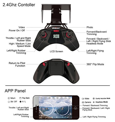 FPV리얼 타임 비디오 송신: HD 720p카메라,리얼 타임을 실현 하는 최초의인 뷰Drone WiFi로 모바일APP를 페어로 하고 있습니다.iOS또는Android의 시스템과 휴대폰 사용 할 수 있는인지 아닌지 확인합니다.것만으로 라이브 비디오 고정밀 도형사등 사용하는 모바일 디바이스 나와야 합니다.