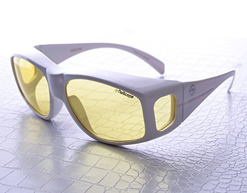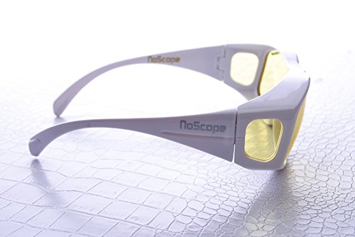 NoScope Golem Yellow Lens Video Game Gaming TV Computer Glasses | Anti Blue Rays Protection & Glare Free | Fit Over Glasses | Reduce Eye Strain and Fatigue | PS4 Xbox One - Polycarbonate Frame, White