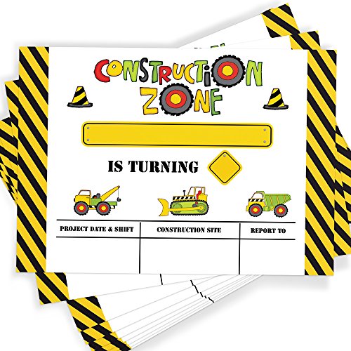 CONSTRUCTION PARTY - 25 fill-in birthday invitations and matching white envelopes! Printed Party's fun construction themed invitations are sure to make your birthday party a striking success!