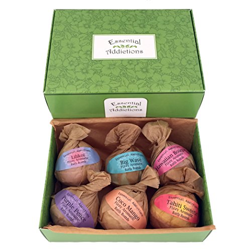 Bath Bomb Gift Set by Essential Addictions - USA made - 6 Fizzy Aromatic Spa Bath Fizzies, Very Lush Bath Bombs, Best Mother's Day Gift, Best Gift for...