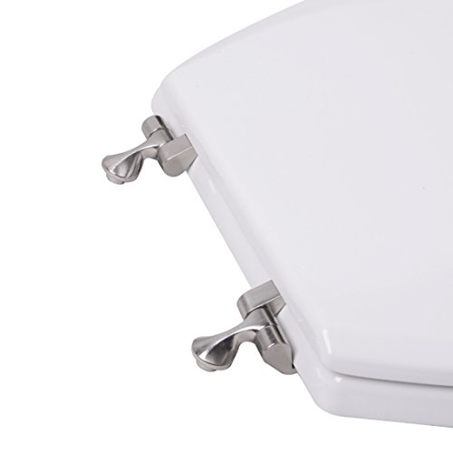 -. Title : Bath Décor 1F1R6-00BN Premium Molded Wood Round Toilet Seat with Adjustable Metal Brushed Nickel Finish Hinge & OSG, White