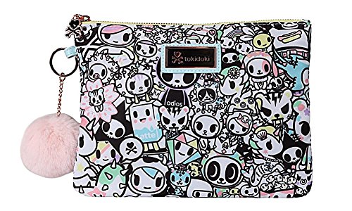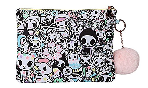 Tokidoki Pastel Pop Collection is out. This eye-catching print features an all-star cast of tokidoki characters in delicate shades of blue, pink, yellow, green and lavender. This soft clutch comes with an adorable faux fur pom key charm.Feature