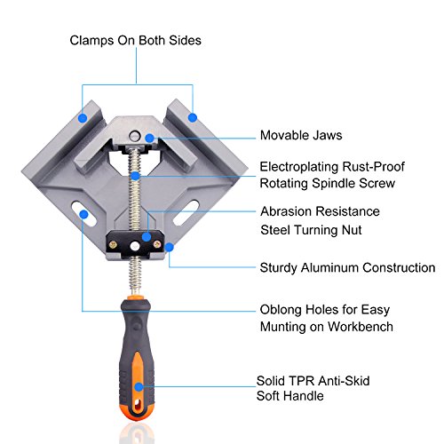 - ❖ BonyTek 90 Degree Aluminum Alloy Corner Clamp allows Two Wood Block of Different Thicknesses to be Joined at a 90 Degree Angle. Perfect for Welding, Installing Furniture, Doweling, Making Cabinet, Frame and Aquarium, etc.