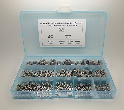 Guard4U 330Pcs 304 Stainless Steel Fastener DIN934 Hex Nuts Assortment Kit, For M2 M2.5 M3 M4 M5 M6 M8 screws bolt
