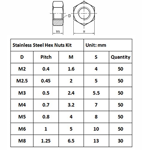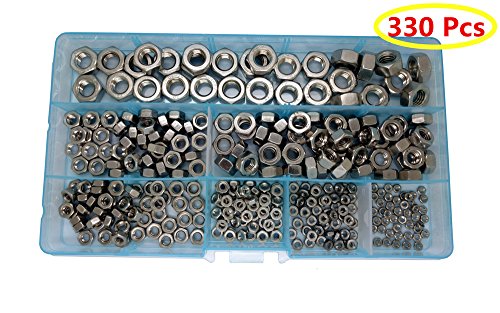 - Stainless Steel hex nuts assortment kit, packed in a plastic box, 7 sizes, total 330 pieces.