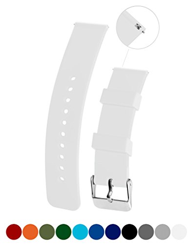 -. Feature : FIND YOUR FIT: Available in four sizes, our watchbands are compatible with any traditional or smartwatch that uses 14mm, 18mm, 20mm, or 22mm spring bars. To determine the appropriate bandwidth for your watch, measure the lug width or your watch. You can also research online for specific watch model measurements. While designed to fit wrists between 5 and 8 inches, these straps accommodate watch faces of different shapes. / EASY TO USE: Simply slide the quick-release lever with your finger to attach or release watch straps. No need to use tools or visit a jeweler! Change bands to switch up your look in seconds! No need to purchase a brand new watch if your existing strap is worn and torn. Feel free to go about your daily activities while wearing these straps, as they remain secure on your wrists without popping off as some competitor brands do. / CRAFTED WITH QUALITY: Made of high tensile silicone with stainless steel buckles and levers, our watch straps are sturdy for long-lasting use. Unlike cheap rubber imitations that encourage the growth of bacteria and becomes smelly, our silicone strap does not collect sweat in addition to being waterproof and washable. Silky smooth to the touch, our straps never feel sticky, unlike other plastic ones. / SUIT YOUR STYLE: Easily create a new look and match your outfit by switching your watchband. Choose from red, orange, green, blue, black, gray, and white. Wear a conservative neutral at the workplace and a bright, bold color for fun in casual settings. Our wide color assortment has options appropriate for both men and women, while our silicone band has an attractive appearance with both casual and fancy watch faces. / WEARS COMFORTABLY ON THE WRIST: Our high quality silicone straps feel silky smooth on skin while being lightweight to wear. Their textured back surface prevents slipping and sliding so that they stay in place without needing to be tightened. However, unlike that of competitor models, the textured surface does not irritate skin. These bands also improve airflow to prevent the accumulation of sweat.
