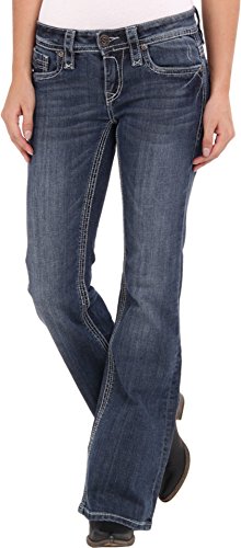 Five pockets. Detailed stitching on back pockets. Sits below waist. Belt loop waist and classic bootcut. Button/zipper opening. 98% cotton, 2% spandex. Machine wash cold, tumble dry low. Imported.
