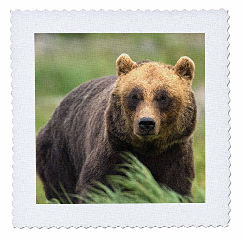 3dRose an Alaskan Brown Bear Stares Intently At Camera Quilt Square, 8 x 8"