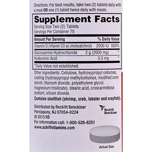 -. Title : Schiff Glucosamine 2000mg with Vitamin D3 and Hyaluronic Acid Joint Supplement, 150 ct