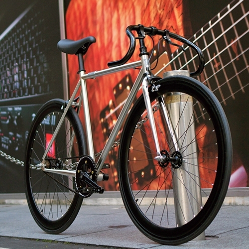 後ハブの左右にギアが付いているダブルコグ仕様で、固定ギアとフリーホイールが選べる。都会の自転車乗りに愛されるホンモノを目指し、パーツのセレクトにもこだわりあり。