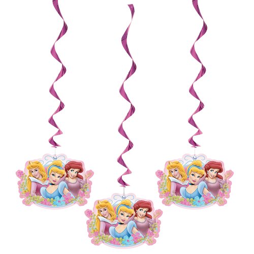 Your little girl's next Disney Princess theme birthday party will look beautiful with our Disney Princess Hanging Decorations. These decorations feature shiny, pink foil swirls with Ariel, Aurora, and Cinderella cut outs, and add royal style to your little girl's Disney Princess theme birthday party. Coordinate these Disney Princess Hanging Decorations with other Disney Princess party decorations or combine with matching solid color party supplies from Unique. Disney Princess Hanging Decorations extend to 36" long and are sold 3 to a package.