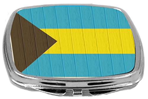 Rikki Knight Compact Mirror on Distressed Wood Design, Bahamas Flag, 3 Ounce