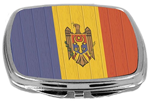 Rikki Knight Compact Mirror on Distressed Wood Design, Moldova Flag, 3 Ounce