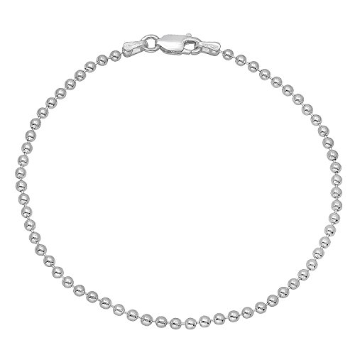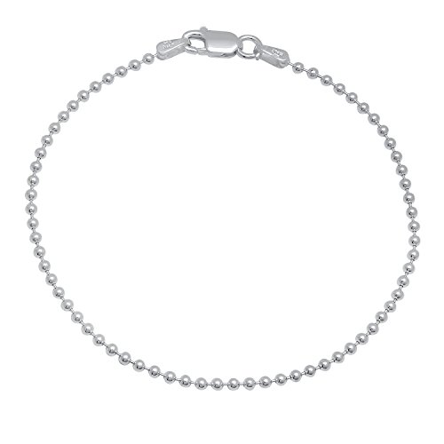 AUTHENTIC .925 STERLING SILVER - This pure silver 7 inch ball anklet is 1.8mm wide (1.8mm thick) that fastens with a sturdy lobster clasp and features a pelline chain style of evenly dispersed military beads