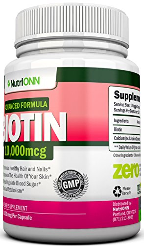 -. Feature : HEALTHY HAIR, SKIN AND NAILS - Biotin is a water-soluble B-vitamin (vitamin B7). Biotin is necessary for cell growth, the production of fatty acids, and the metabolism of fats and amino acids. It promotes strong and healthy hair and nail growth and provides dietary support for glowing smooth skin. / NATURALLY SOURCED PHARMACEUTICAL-GRADE BIOTIN - 10,000 mcg of Biotin in each premium capsule! This is the highest potency Biotin you can find. Guaranteed quality. Laboratory tested. No Artificial Color, Flavor or Sweetener, No Preservatives, No Sugar, No Starch, No Milk, No Lactose, No Soy, No Gluten, No Wheat, No Yeast, No Fish. Sodium Free. / ENERGY PRODUCTION AND CELL DEVELOPMENT - Biotin plays an important role in producing energy in your body. Biotin and the rest of the B vitamins convert macronutrients into fuel to power all the cells in your body. / WHY BUY FROM US - As a small company the most valuable asset is our customer and we make sure we do everything to make you happy. Every email, every question or every problem is answered within hours. We make sure to choose the best ingredients and make the highest quality product, because reputation is everything. You can end your search. We got you covered. You can press the buy button with ease. / YOU PAY NOTHING - If you don't get the results you wanted with our product we will give you a 100% refund. No questions asked. At NutriONN our number one P.R.Iority is to make sure our customers are happy.