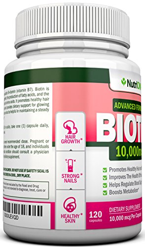 -. Title : BIOTIN 10,000 MCG - 120 Capsules - Designed for Hair Growth, Strong Nails and Healthy Skin - Pharmaceutical-grade Natural d-Biotin (Vitamin B7) - Advanced Formula To Enhance Your Results