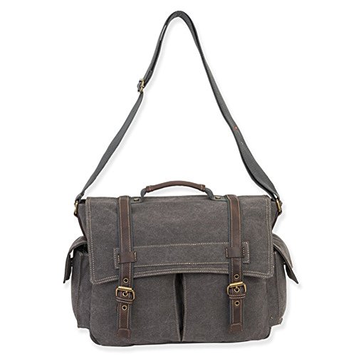 Product Description Genuine CargoIt canvas messenger bag with shoulder strap, leather carry handle and antique brass hardware. Perfect gift idea for a vacationer, business traveler or busy student. 0