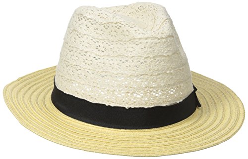DY Women's Crochet Panama Hat with Grosgrain Paper Brim
