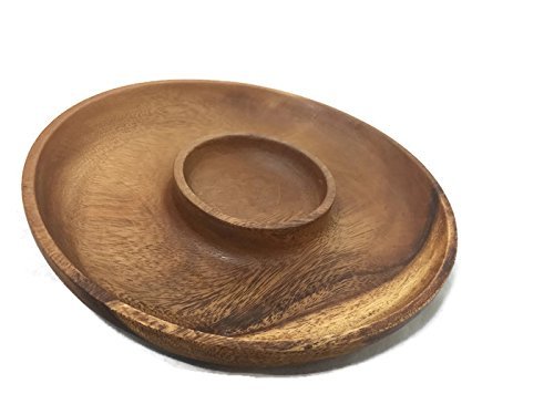 Product Description Beautiful bowl made of solid acacia wood. Perfect for appetizers and seasonings. You can place chips on the sides or salsa. Also goes great as a sushi plate holder and is good for restaurants serving small snack sizes. 0