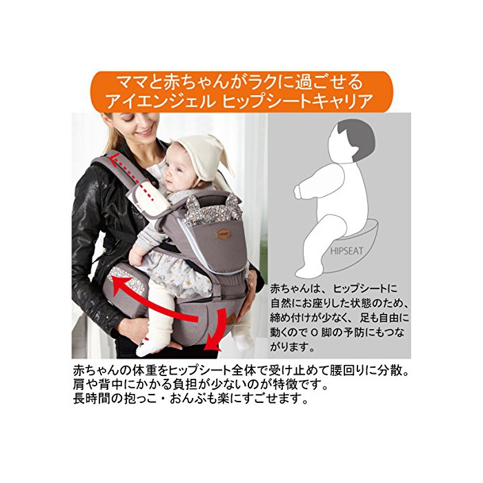 원본상품명: i-angel アイエンジェル ヒップシ?トキャリア 抱っこ紐 アニマルセピアグレイ 落下防止安全ベルト付(ベルトカバ?前向き抱っこ用カバ?付?) 【SG認?/メ?カ?保?日本語?明書付】