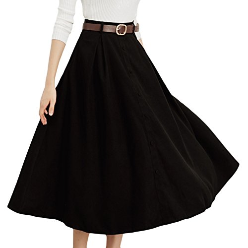 -. Feature : ベルト付きあったかミモレ丈フレアスカート! / フロントのボタン装飾が可愛くポイントプラス / すそがふんわり広がる、女性らしいデザインの秋冬スカートです。 / ウエストすっきり細見えシルエで大人可愛い! / タイトシルエットの上衣と合わせると可愛いです。
